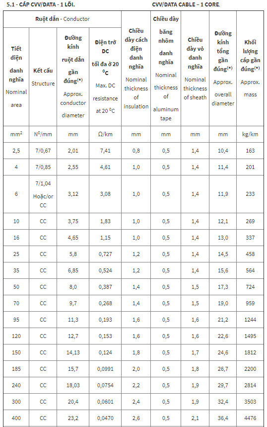 - Cáp CVV/DATA, CVV/DSTA dùng cho hệ thống truyền tải và phân phối điện ngầm, cấp điện áp 0,6/1 kV, lắp đặt cố định.
