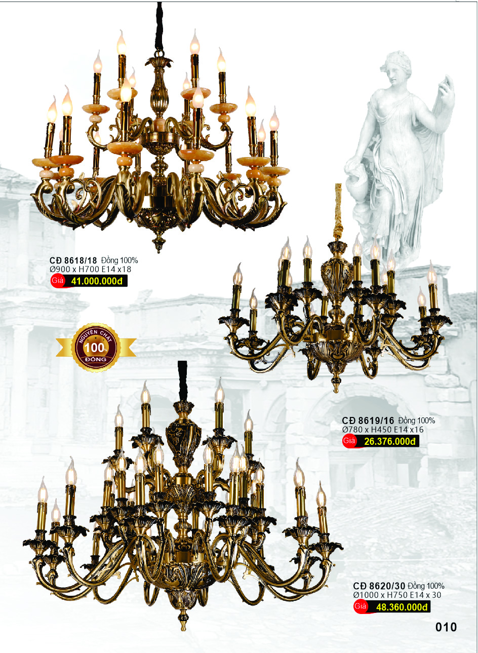 Đèn Chùm Đồng Cao Cấp CĐ 8618/18 - 8619/16 - 8620/30