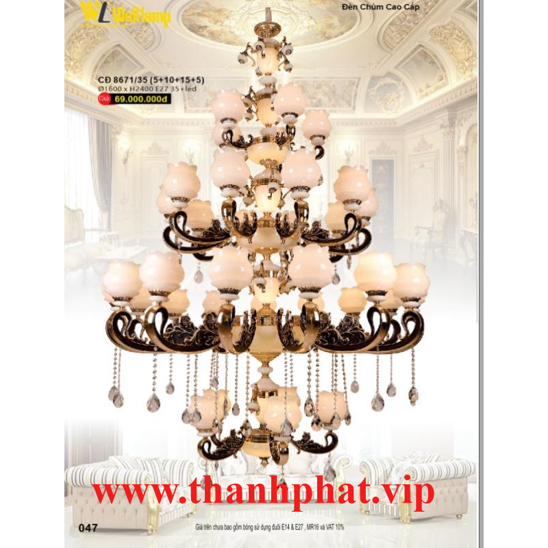 Đèn Chùm Đồng Cao Cấp CĐ 8671/35