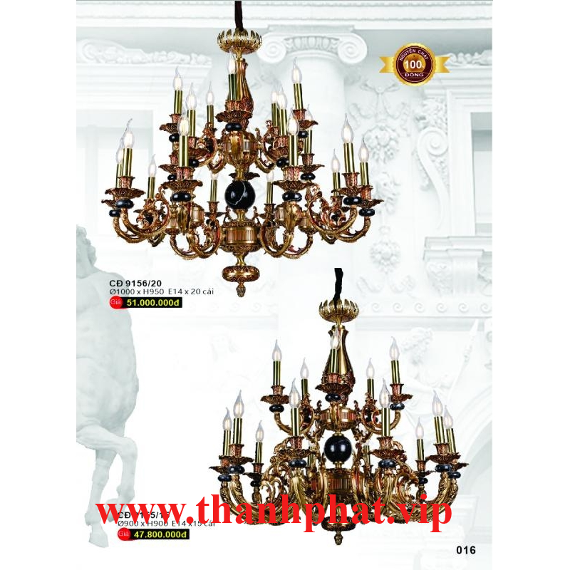 Đèn Chùm Đồng Cao Cấp CĐ 9155/15 - 9156/20