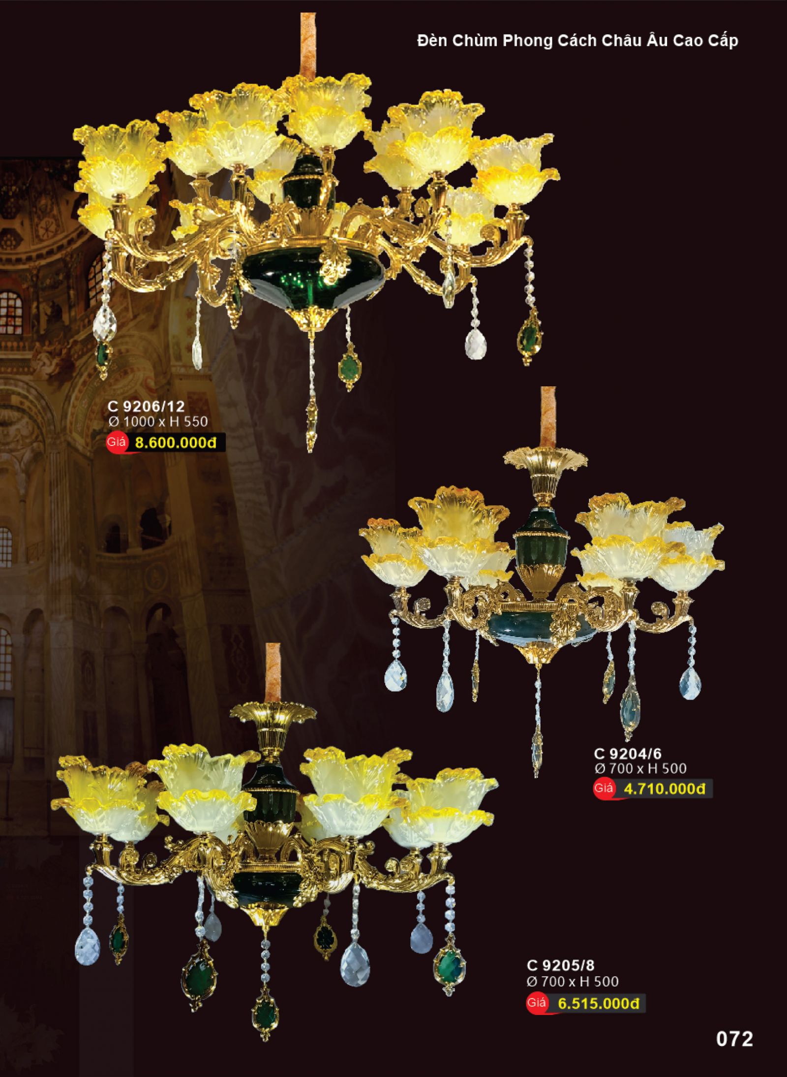 Đèn Chùm Pha Lê Cao Cấp Kiểu Châu Âu C 9204/6 - 9205/8 - 9206/12