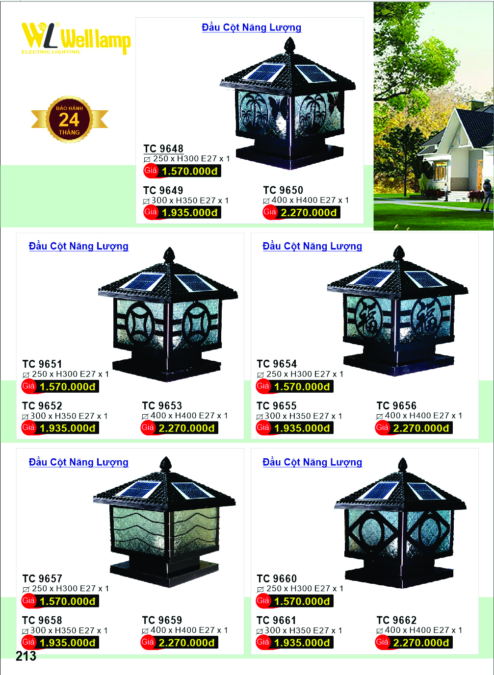 Đèn Đầu Cột Nhôm Đúc Năng Lượng Mặt Trời TC 9651-9652-9653-9654