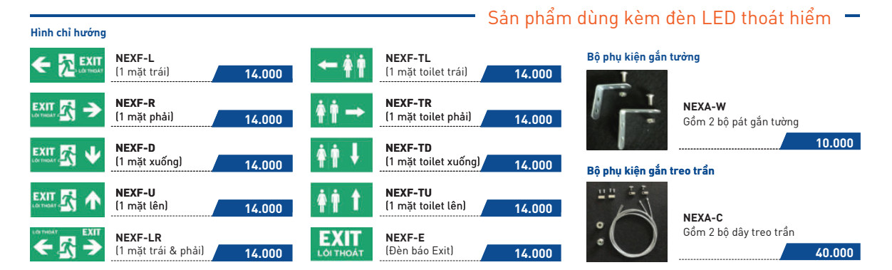 Đèn LED Chỉ dẫn có 2 loại là đèn Chỉ dẫn cửa thoát hiểm (Exit) và đèn Chỉ dẫn nhà vệ sinh. Đèn thường được treo tại các khu vực hành lang, cầu thang hoặc ở chỗ cửa ra vào. Nhằm chỉ lối dẫn đến khu vực Wc của tòa nhà hoặc chỉ hướng thoát nạn khi tòa nhà xảy ra sự cố.