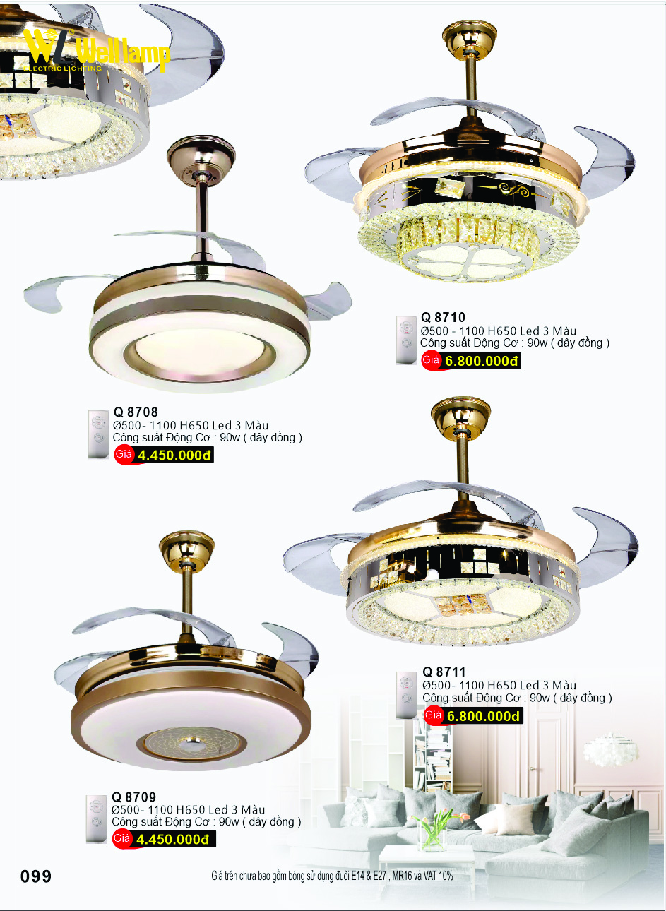 Đèn Quạt Led Cao Cấp Q 8708-8709-8710-8711