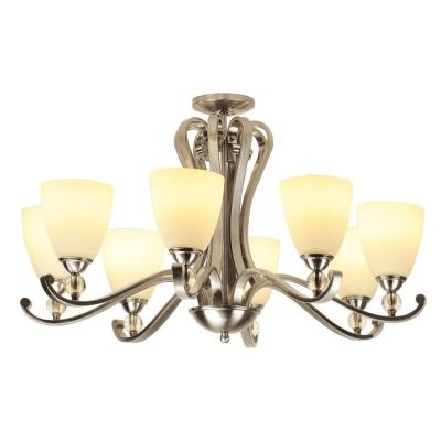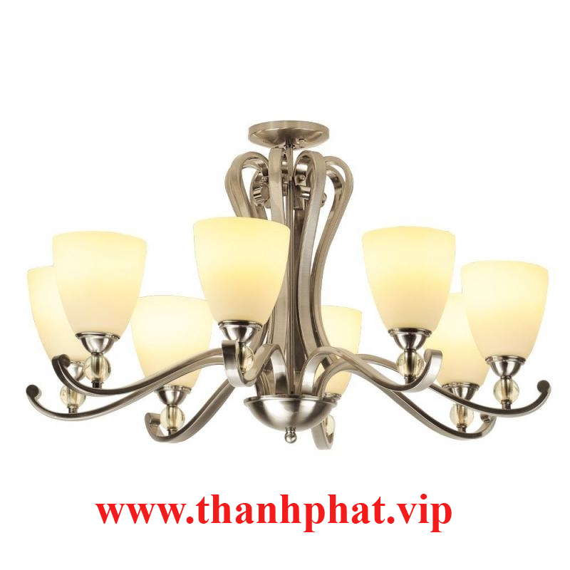 - Chất liệu: Khung sườn kim loại màu bạc, chóa đèn bằng sứ